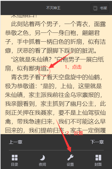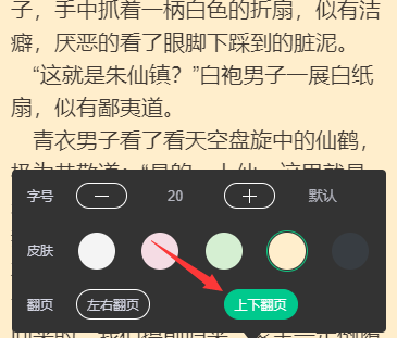 本页面展示的《不灭神王》最新章节数据来源于书旗小说H5端(t.shuqi.com)。有读者翻页该阅读页无法左右滑动翻页,其实正确的操作是点击左侧或者右侧区域进行翻页,而非滑动页面。为了更好的阅读体验,建议按如图所示,设置“上下滑动分页”。具体操作步骤如下:
